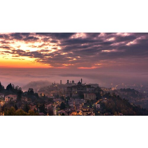 Картина на холсте 30x40 LinxOne "Закат italy bergamo" интерьер для дома / декор на стену / дизайн