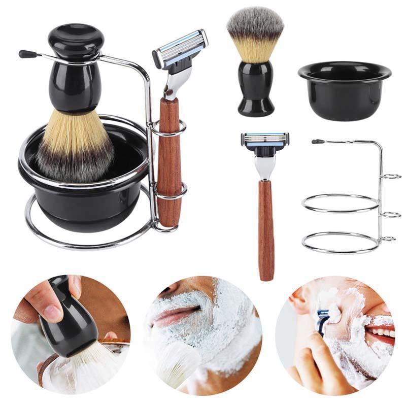 4шт комплект для бритья руководство + Stainess Стальной держатель стенда + кисть + набор чаш