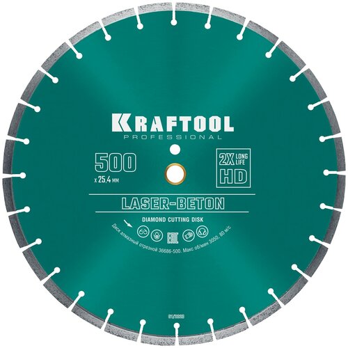 Laser-beton 500 мм, диск алмазный отрезной по бетону и камню, Kraftool 36686-500 .
