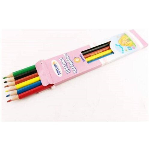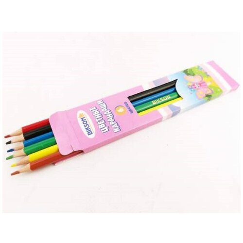 Карандаши 06 цветов, ТМ "BIKSON" "Девочка" пластиковые, грифель 2,8 мм, треугольные