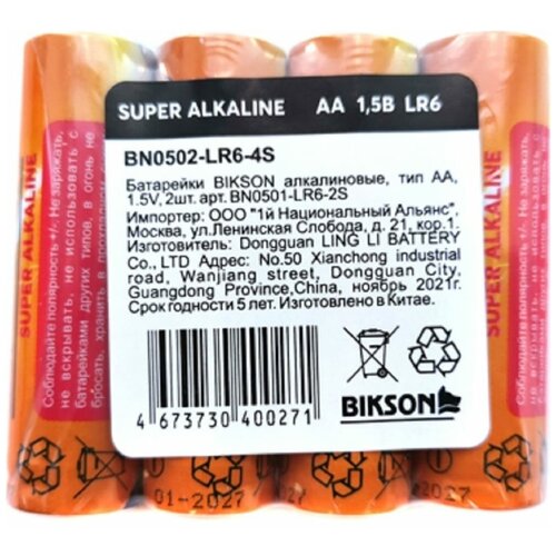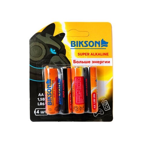 Батарейка BIKSON алкалиновая, тип АА, 1,5V, 4шт, блистер LR6 / батарейки пальчиковые / набор 4шт