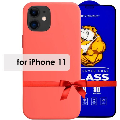 Чехол и стекло на айфон 11, чехол с микрофиброй, силиконовый, матовый, цвет розовато-лиловый