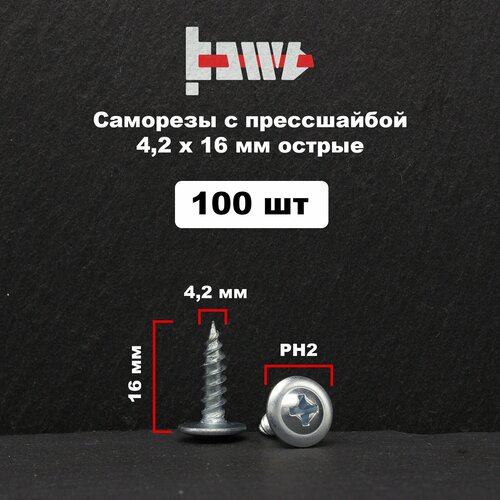 Саморезы по металлу с прессшайбой острые 4,2х16 10 шт