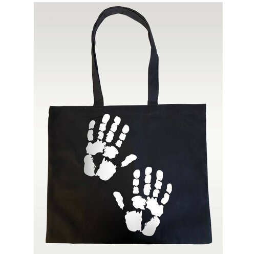Черный шоппер из хлопка девушка киберпанк, минимализм - 48