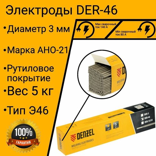 Электроды для сварки DER-46 диаметр 3 мм 5 кг, рутиловое покрытие// Denzel АНО-21