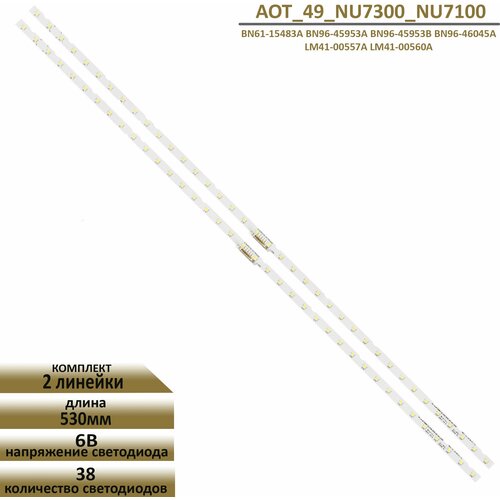 Светодиодная подсветка для телевизоров Samsung UE49NU, UE49RU, UE49N, AOT_49_NU7300_NU7100, BN61-15483A (комплект 2 шт)