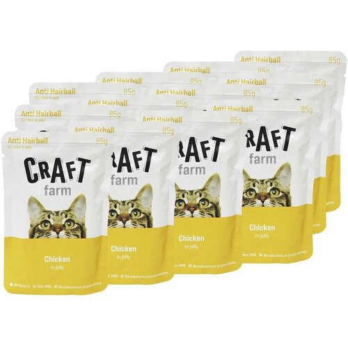 Корм для кошек CRAFT FARM для выведения шерсти, курица в желе пауч 85г (упаковка - 12 шт)