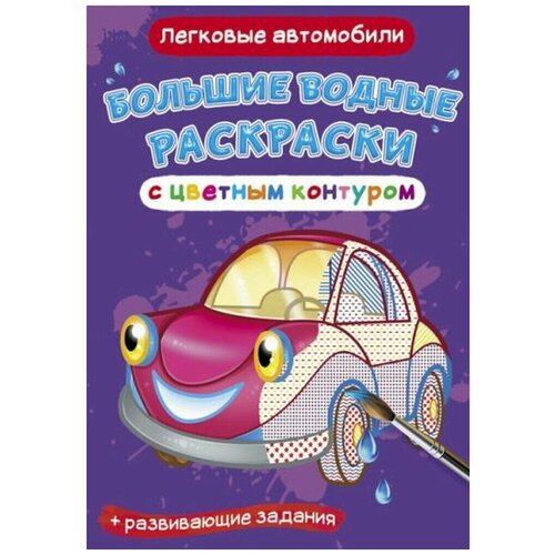 Раскраска CRYSTAL BOOK, Большая водная раскраска с цветным контуром. Легковые автомобили, 1 шт