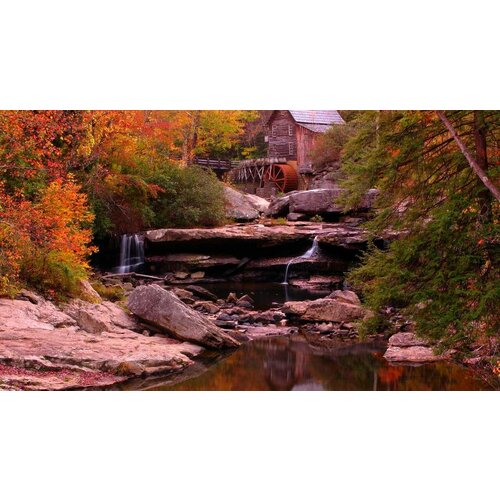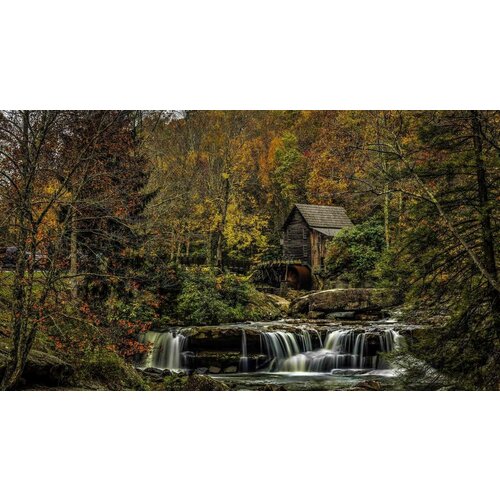Картина на холсте 33x50 LinxOne "Glade Creek Grist Mill" интерьер для дома / декор на стену / дизайн