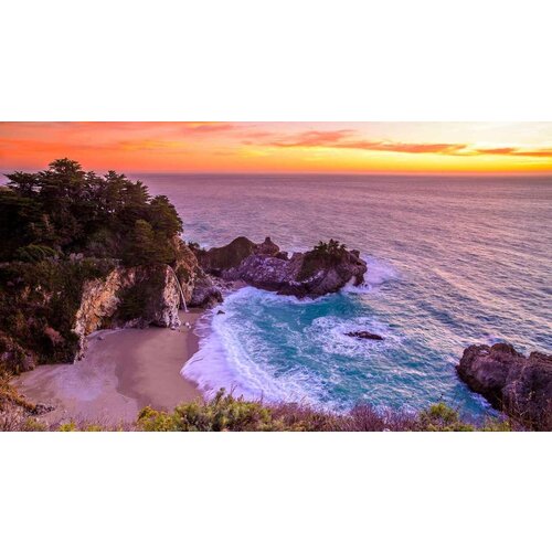 Картина на холсте 50x80 LinxOne "McWay falls Creek закат sunset" интерьер для дома / декор на стену / дизайн