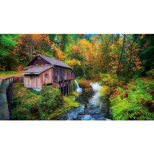 Картина на холсте 50x60 LinxOne "Cedar Creek Grist Mill" интерьер для дома / декор на стену / дизайн
