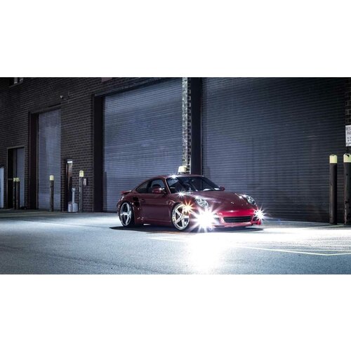 Постер на экокоже 40x40 LinxOne "Porsche Ночь Асфальт Car" интерьер для дома / декор на стену / дизайн