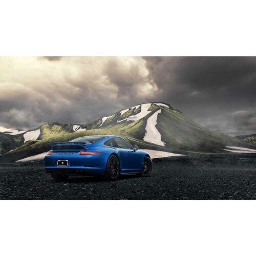 Постер на экокоже 50x50 LinxOne "Porsche blue 911 gts car" интерьер для дома / декор на стену / дизайн
