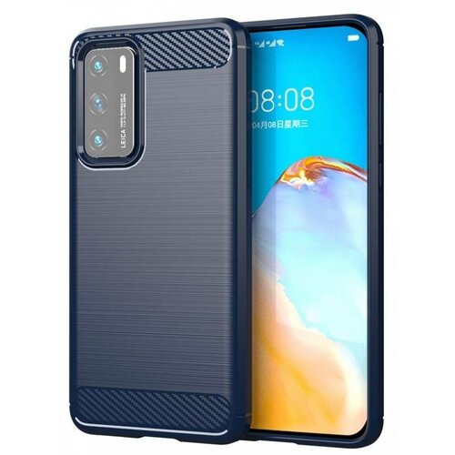 Накладка силиконовая для Huawei P40 карбон сталь синяя