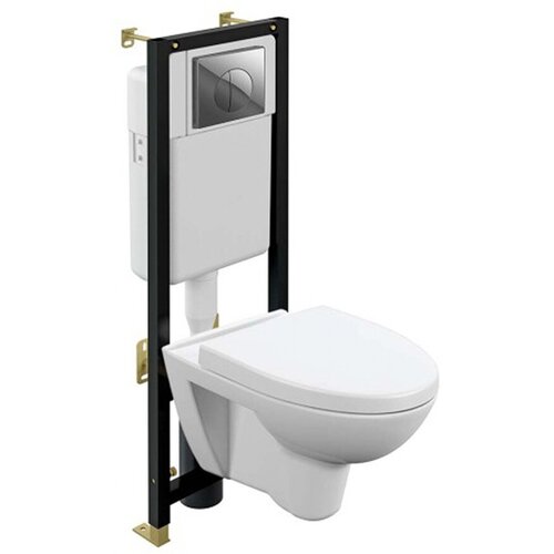 Комплект инсталляции Cersanit Black с унитазом Parva с кнопкой хром и сиденьем дюропласт микролифт (64229)