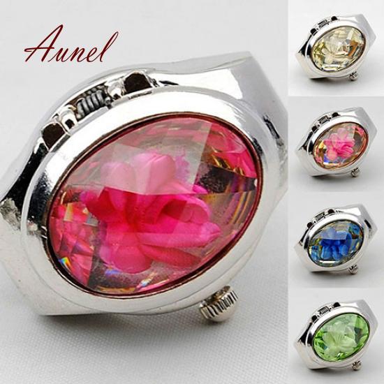 Женские кварцевые часы в виде кольца с горным хрусталем