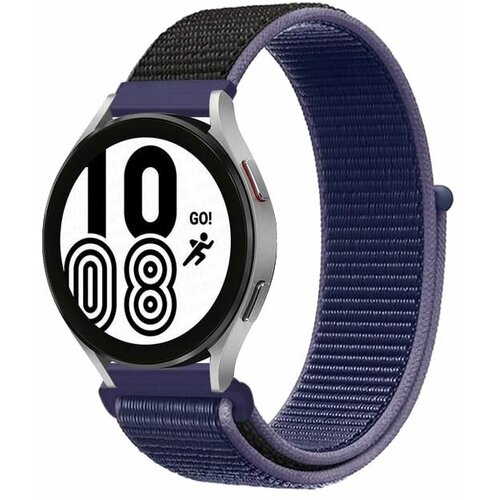 Ремешок для смарт-часов универсальный 20 мм нейлоновый тканевый браслет Xiaomi Samsung Huawei Honor, темно-синий с фиолетовой полоской