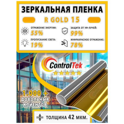 Пленка зеркальная для окон, Солнцезащитная пленка ControlTek R GOLD 15 (золотая). Размер: 75х1000 см. Самоклеящаяся пленка на окна.