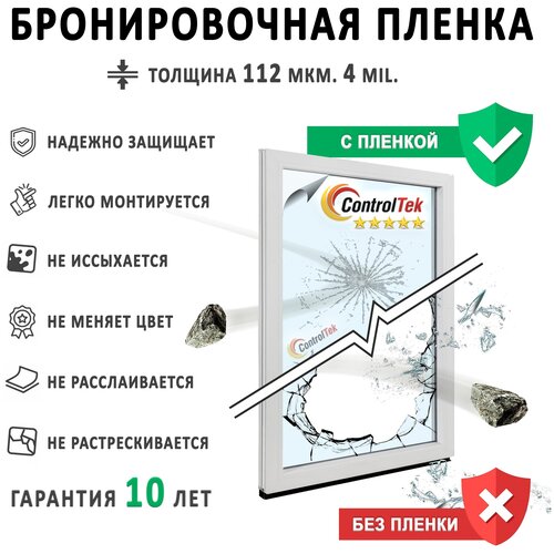 Пленка защитная для окон, бронирующая пленка для стекол ControlTek Safety (4 mil). Ударопрочная. Размер: 75х50 см.