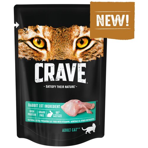 CRAVE 70гр Корм для взрослых кошек, с кроликом (пауч)