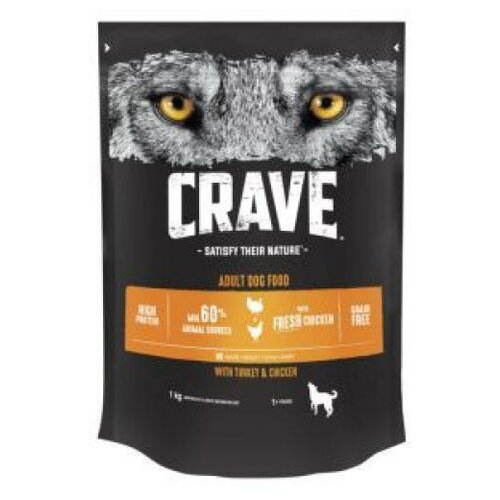 Сухой корм для взрослых собак всех пород Crave с курицей и индейкой 1 кг.
