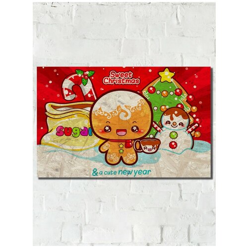 Картина интерьерная на рельефной доске Новый год (Рождество, Дед Мороз, Санта, Подарок) - 7502 Г