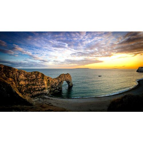 Постер на экокоже 60x110 LinxOne "Закат море арка durdle door" интерьер для дома / декор на стену / дизайн
