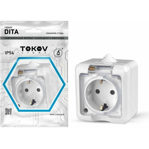 Розетка 2-м ОП Dita 16А IP54 250В с заземл. с прозр. крышкой бел. TKL-DT-R2Z-C01T-IP5, TOKOV ELECTRIC TKLDTR2ZC01TIP54 (1 шт.)