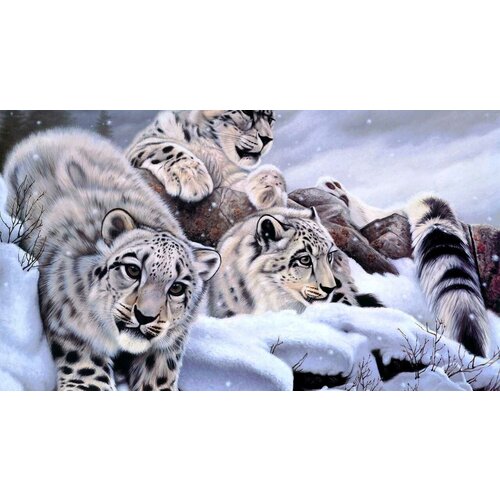 Картина на экокоже 60x110 LinxOne "Арт снег ирбис daniel renn" интерьер для дома / декор на стену / дизайн