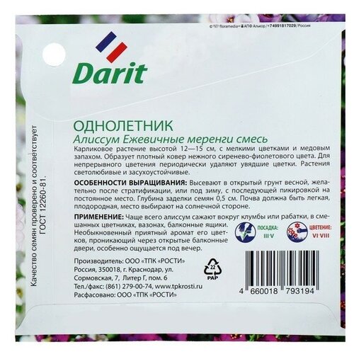 Семена цветов Алиссум DARIT, "Ежевичные меренги", однолетник, 0,2 г