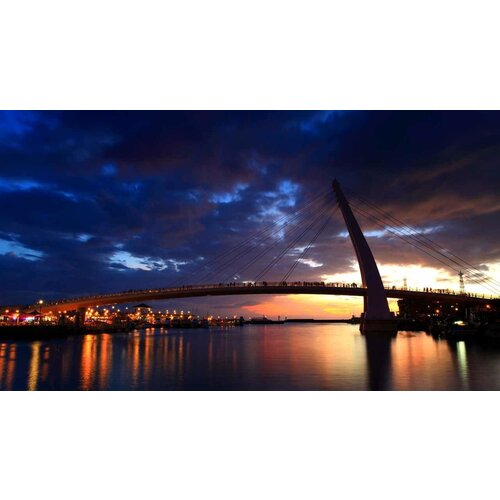 Постер на экокоже 30x30 LinxOne "Люди река New taipei city" интерьер для дома / декор на стену / дизайн