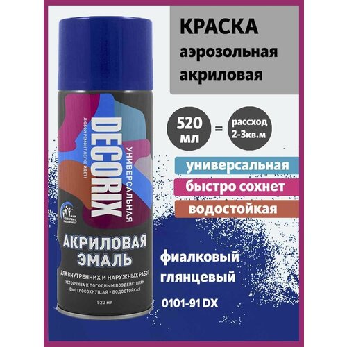 Эмаль акриловая глянцевая аэрозольная DECORIX 520 мл фиалковый