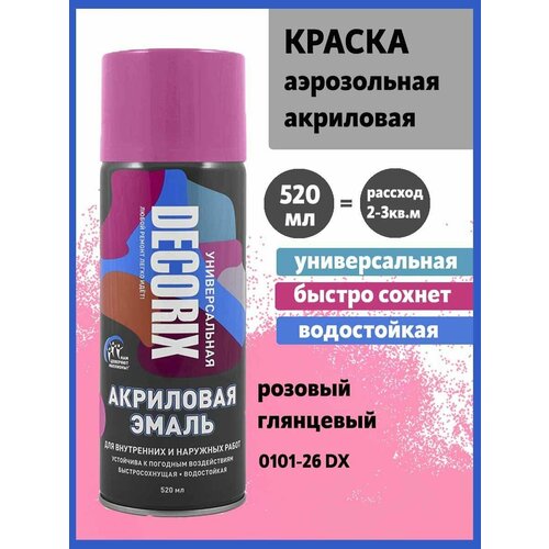 Эмаль акриловая глянцевая аэрозольная DECORIX 520 мл розовый