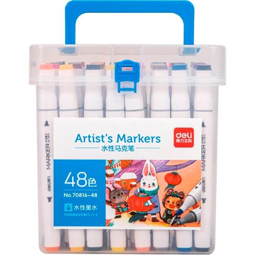 Набор маркеров для скетчинга Deli 70816-48 двойной пиш. наконечник 48цв. пластиковая коробка (48шт.)