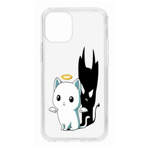Чехол на Apple iPhone 12 mini Kruche Print Angel Demon/накладка/с рисунком/прозрачный/бампер/противоударный/ударопрочный/с защитой камеры