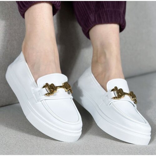 Туфли лоферы женские белые с цепочкой, 36 размер, 23,0 см