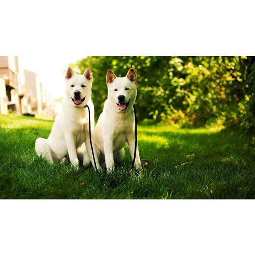 Картина на холсте 60x100 LinxOne "Akita трава dog white" интерьер для дома / декор на стену / дизайн