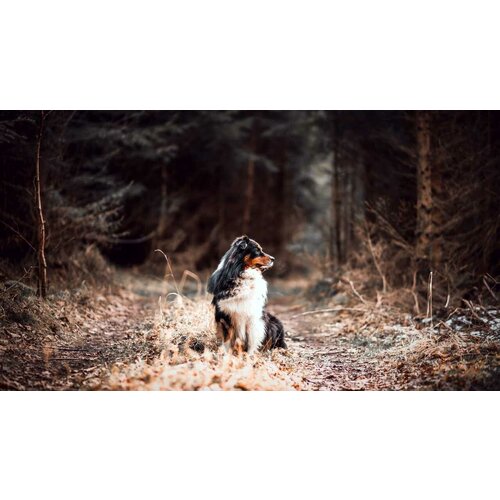 Картина на экокоже 33x50 LinxOne "Dog canine road forest" интерьер для дома / декор на стену / дизайн