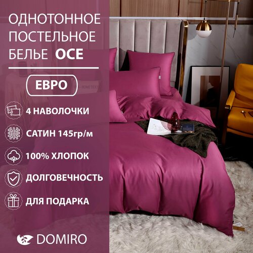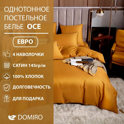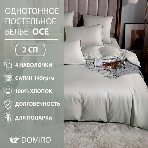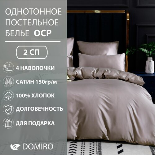 Однотонное постельное белье DOMIRO 2 спальное, 100% египетский хлопок Сатин Премиум, 4 наволочки, в подарочной упаковке