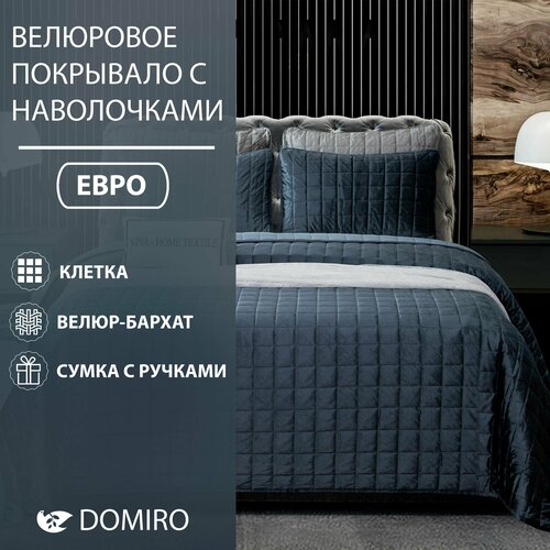 Покрывало стеганое DOMIRO на кровать или диван 240х220 см с двумя наволочками 50х70 см, размер евро макси