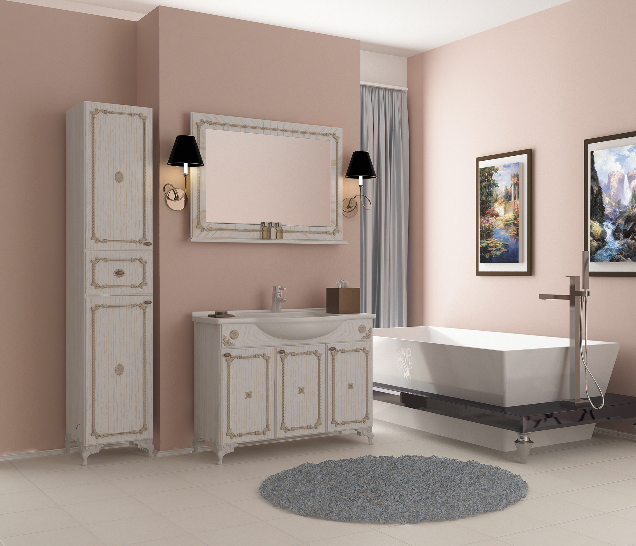 Набор мебели для ванной Mixline Сальери-95 патина золото (зеркало, пенал правый, тумба, раковина)