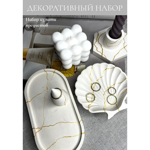 Декоративный набор подставок для украшений из гипса, подсвечник и свеча "Бабл Куб"