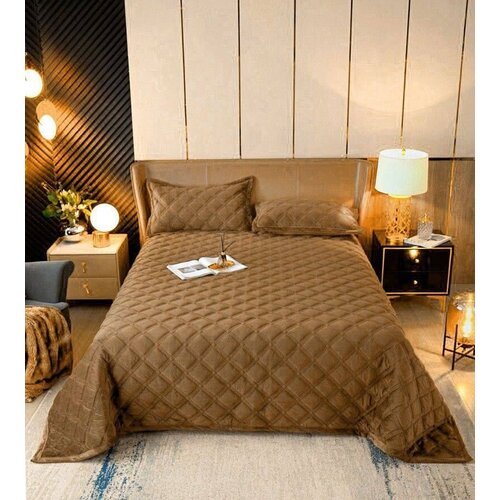Покрывало на кровать 220х240 см. Велюр, Хлопок. Евро. Saya Home. Коричневый.