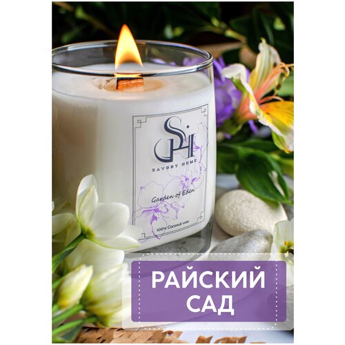 Свеча с деревянным фитилем / Райский сад / Savory Home / свеча ароматическая / ароматические свечи / свечи ароматические для дома / ароматическая свеча / свеча в стакане / парфюм для дома / аромасвеча / аромат для дома / аромасвечи для дома / свечи / свеч