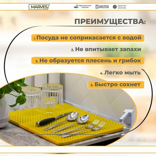 Коврик для посуды, EVA, MARVES home, узор соты, 30х40 см