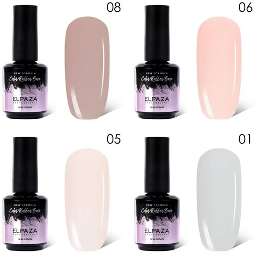 Elpaza Rubber Base Natural/ Каучуковая камуфлирующая база 15 мл/Набор 4 шт