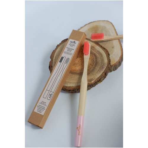Зубная щетка Eco4YOU бамбуковая круглая ручка, цвет розовый