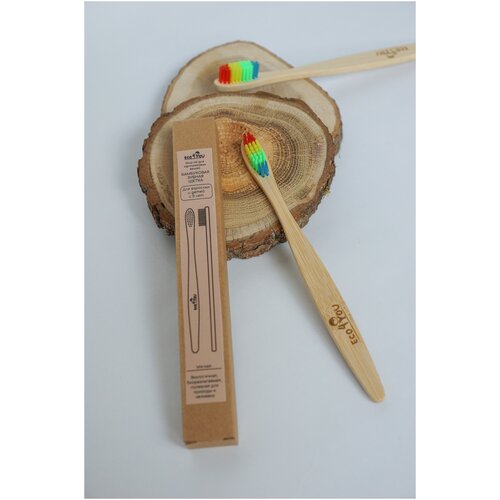 Зубная щетка Eco4YOU бамбуковая плоская ручка, цвет радуга