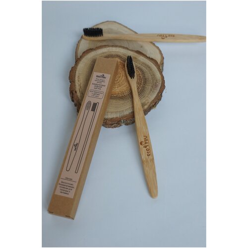 Зубная щетка Eco4YOU бамбуковая плоская ручка, цвет черный