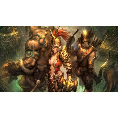 Постер на экокоже 33x50 LinxOne "Warrior epic, девушка, воительница" интерьер для дома / декор на стену / дизайн